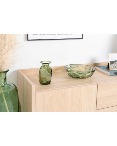 The Origami Vase 16 cm Green is an elegant and sustainable decorative piece that brings a touch of nature and style to any room. Made from recycled glass and entirely produced in Spain, this vase is not only an attractive decorative element but also an eco-friendly option. Perfect for enhancing your living room, this vase can be complemented with fresh or dried flowers to add a touch of freshness and vitality to your home.