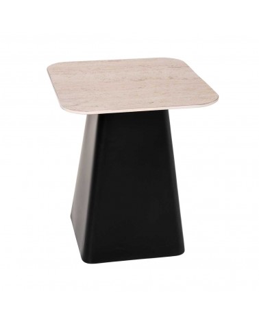 Contemporary Side Table - 47x40x40 cm - Black Metal Base and Travertine Marble Top