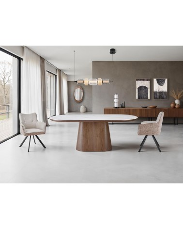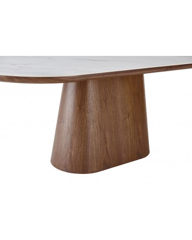 Oval Dining Table with White Porcelain Top and Walnut Veneer Base – 200x90x75 cm