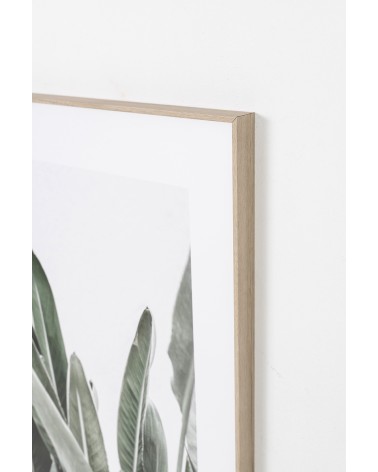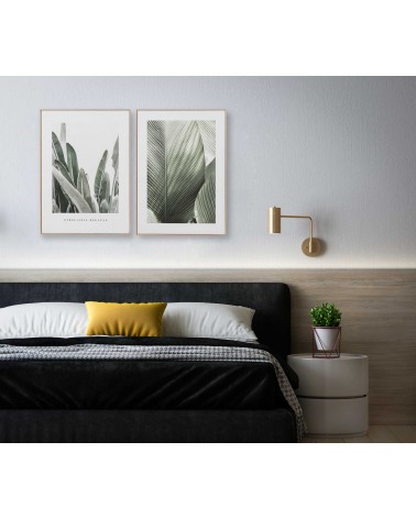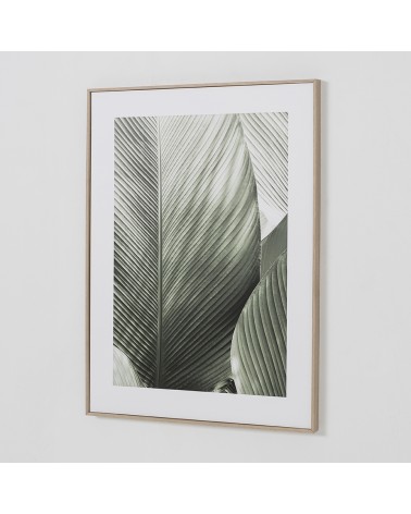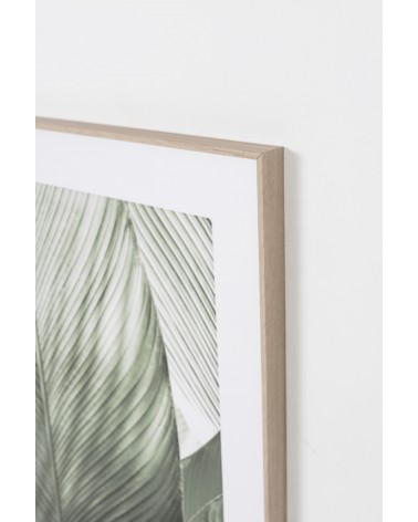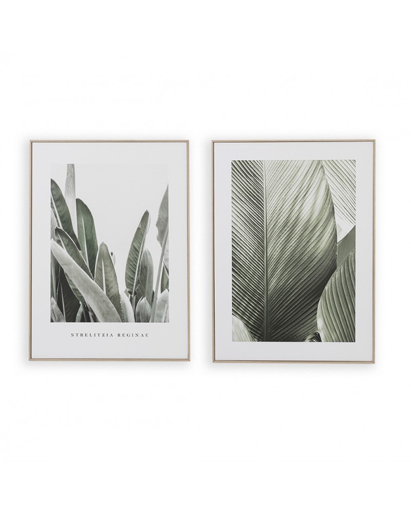 Set of 2 printed sheets with green leaves. Oak effect frame (50x70 cm each
