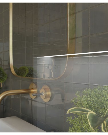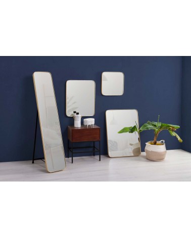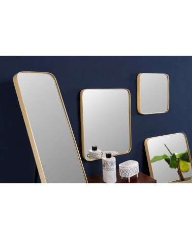 Introducing a mirror with a round gold frame, exuding a retro vibe. You can hang it horizontally or vertically depending on the effect you want to achieve in your decor.