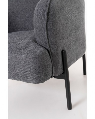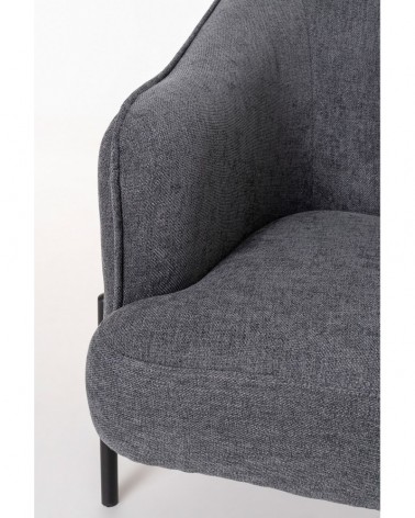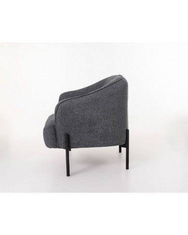 Este sillón destaca por su forma compacta y equilibrada, con un respaldo ligeramente inclinado y reposabrazos amplios que invitan al descanso. El tono gris oscuro de su tapizado le confiere un aire sobrio y refinado, capaz de integrarse en ambientes minimalistas, industriales o incluso clásicos. Su estética atemporal lo convierte en una pieza duradera no solo por su calidad, sino también por su estilo.