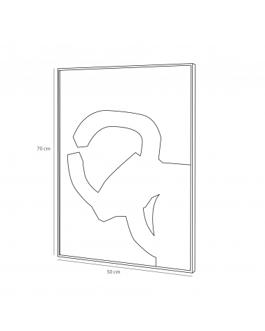 Cada cuadro está compuesto por una lámina de alta calidad, montada sobre soporte rígido libre de cristal, lo que evita reflejos y permite apreciar plenamente las texturas del papel y la fuerza de las formas. El marco, de líneas limpias y materiales resistentes, está pensado para no competir con la obra, sino para contenerla con discreción y sobriedad. Este diseño estructural sin elementos brillantes refuerza la naturaleza contemplativa del conjunto.