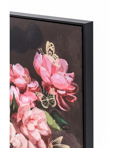 Cuadro óleo chica con flores rosas – marco de madera negro (80x120x3.5 cm)