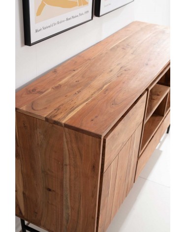 Aparador acacia con luz y patas de metal. Medidas: 140*40*80 cm