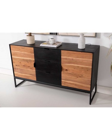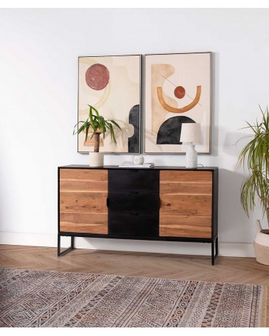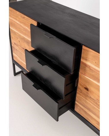 Equipado con dos puertas y tres cajones espaciosos, ofrece un amplio espacio para guardar vajilla, cubiertos, mantelería y otros objetos esenciales. Es la solución perfecta para mantener tus pertenencias ordenadas y al alcance, sin comprometer el estilo.