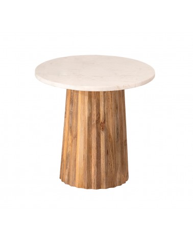 El contraste entre el metal de la pata y el mármol blanco aporta una elegancia sutil pero impactante al conjunto. La combinación de estos materiales añade un toque de sofisticación y simplicidad que se integra armoniosamente con cualquier estilo decorativo que tengas en tu hogar.
