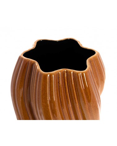 Presentamos nuestro Jarrón de Cerámica en un cautivador tono ocre, una pieza que añadirá un toque de sofisticación a cualquier espacio de tu hogar. Con dimensiones de 30*16*16 cm, este jarrón de cerámica brillo destaca por su diseño moderno, con la boca en forma de estrella y un estriado sutil que añade textura y estilo.