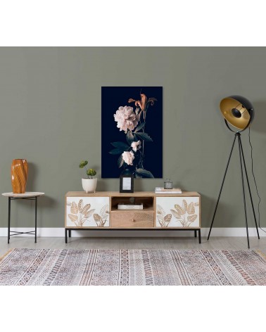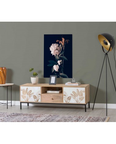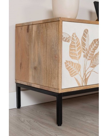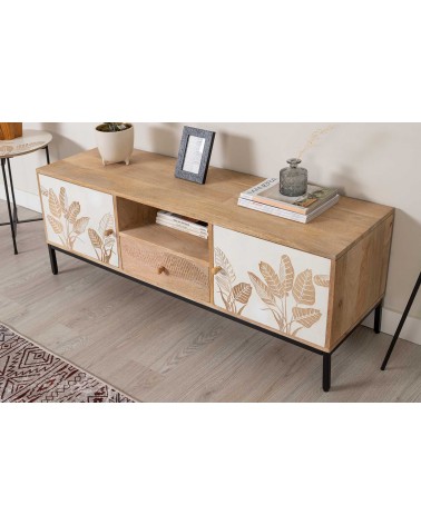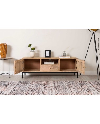 Este mueble de TV está claramente influenciado por el estilo Boho Chic, caracterizado por su ambiente relajado y ecléctico. Aporta una sensación de calma y serenidad a tu sala de estar, creando un ambiente acogedor que invita al relax y la tranquilidad.