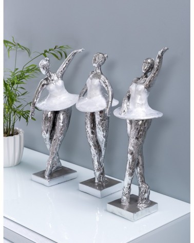 - Diseño: La figura representa a una bailarina en una pose de baile clásica, con un cuerpo de color plata y un vestido de nácar que resalta su delicadeza y movimiento.