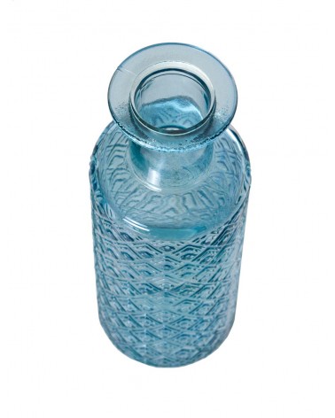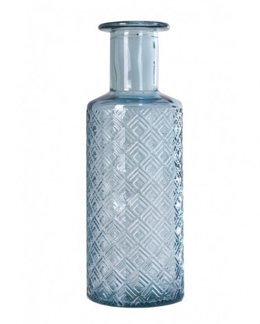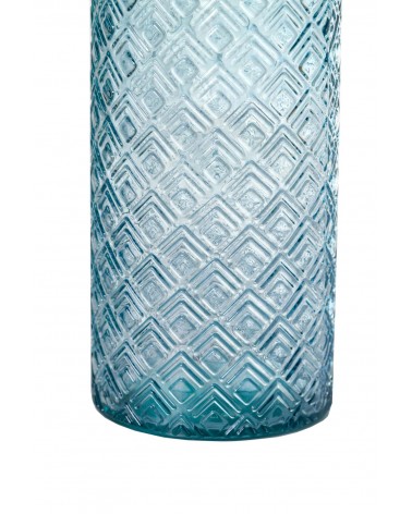 Jarrón vidrio con textura rombos color azul 28cm (8x28x8cm)