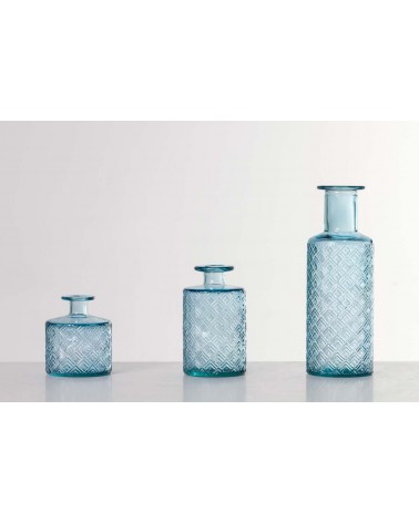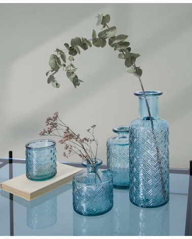 Eleva tu Decoración con Elegancia Sostenible: Jarrón de Vidrio con Textura de Rombo en Azul