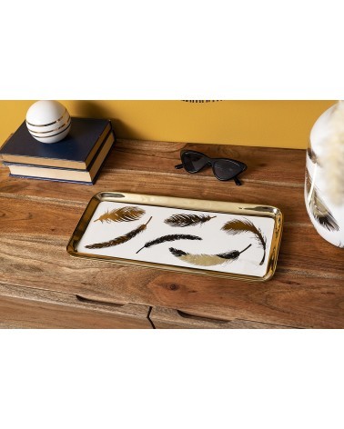 Añade un toque de glamour a tu hogar con nuestro Centro de Cerámica adornado con hermosos diseños de plumas. Con dimensiones de 37x2x18cm, este centro es el complemento perfecto para realzar la belleza de cualquier espacio de tu hogar.