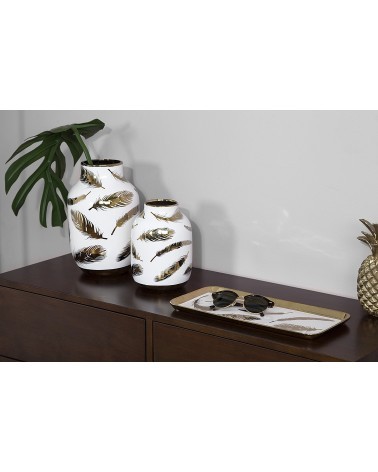 Las plumas en tono dorado que adornan este centro de cerámica añaden un toque de elegancia y distinción a tu decoración. Su diseño delicado y detallado aporta un toque de sofisticación que no pasará desapercibido.